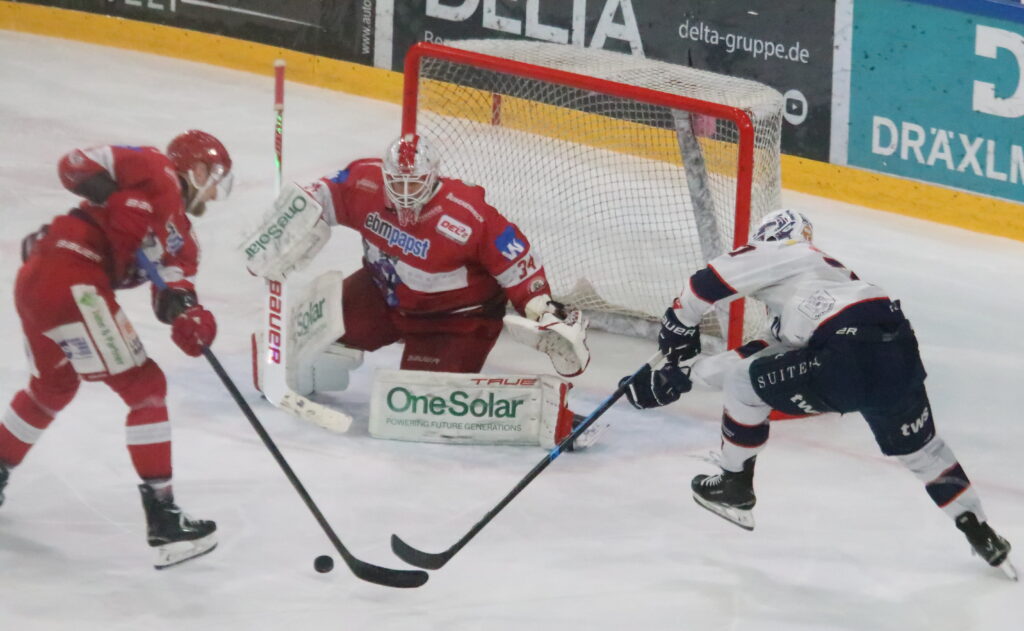 Sollte den Towerstars der Sieg wie schon im Hinspiel in Ravensburg erneut durch die Finger gleiten? Die Antwort präsentierte Mark Rassell 17 Sekunden vor dem Ende. Nachdem sich die Kollegen mit beherztem Kampf gegen die Sechs-gegen-fünf-Unterzahl gewehrt hatten, brachte der Ravensburger Goldhelm den Puck zum alles entscheidenden 3:5 ins inzwischen leere Landshuter Tor unter.