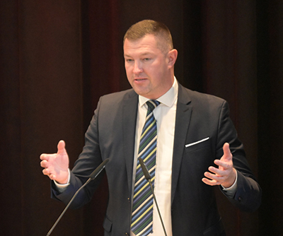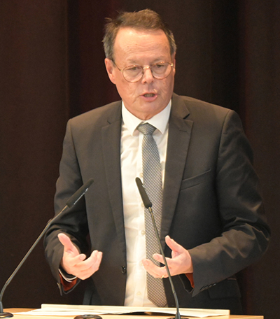 Das tat Klaus Tappeser (Bild) auch ausführlich. Die Meisterprüfung ist einem Bachelor gleichwertig und Landwirte müssen sich die Kenntnisse von Botanikern für ihre Pflanzen, von Veterinären für ihre Tiere und von Chemikern für die Düngung aneignen. Sie sorgen dafür, dass es ihren Tieren gut geht, denn von kranken Tieren bekommt man keine Milch, kein Fleisch und keine Eier. Und von kranken Pflanzen kann man keine gute Ernte einbringen. Ohne Landwirt keine Nahrungsmittel, kein Landschaftsschutz. In seinem Festvortrag ließ Tappeser kein Verdienst des „Unternehmers Landwirt“ aus.