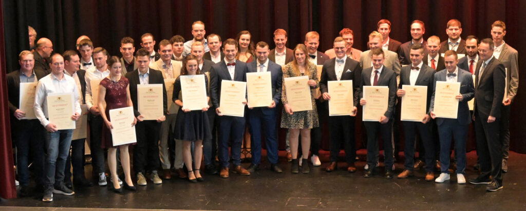 Diesen Nikolaustag werden die 34 Jungbäuerinnen und Jungbauern nicht vergessen. Vor einem vollen Saal, gefüllt mit Familienmitgliedern, Freunden und Verwandten wurde ihnen in einer festlichen Atmosphäre vom Regierungspräsidenten Klaus Tappeser ihre Meisterbriefe überreicht. Darunter aus Bad Waldsee und seinen Teilorten Rebecca Bohner, Sebastian Jekal aus Michelwinnaden und Simon Zimmermann aus Reute.
