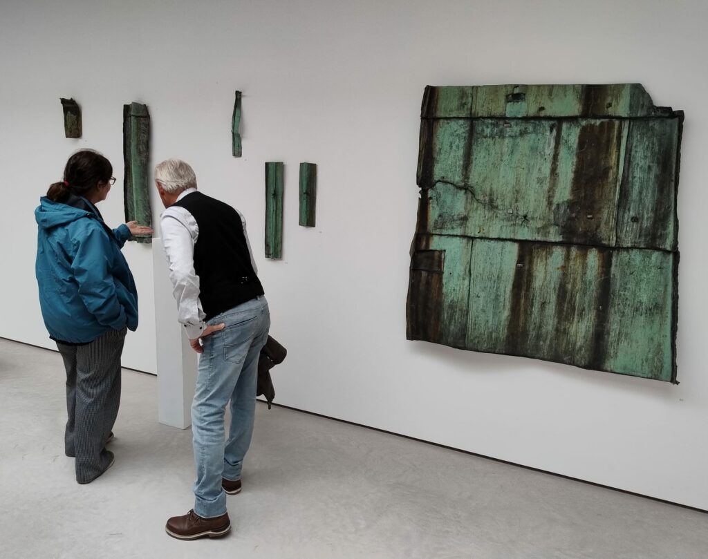 Kißlegg – Zur Eröffnung einer ganz besonderen Ausstellung drängten sich am Samstag, 28. September, knapp 200 Besucher in den schönen Räumen von Wolfgang Huber, darunter Architekten und Denkmalpfleger, aber auch viele Kißlegger Handwerker sowie Kunstinteressierte aus der Region. Über elf Jahre hat sich der Flaschnermeister mit hochprofessionellen Präsentationen zeitgenössischer Kunst einen Namen gemacht. In der neuen Ausstellung geht es nun um sein eigenes Metier: die Arbeit an historischen Blechdächern.