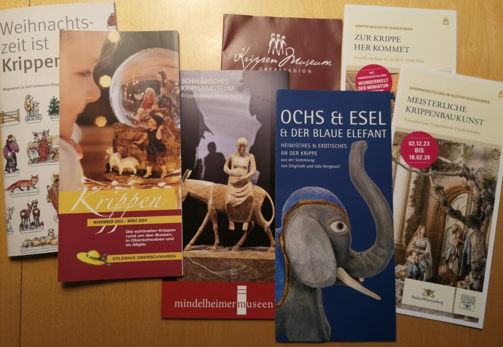 Wenn man sich schließlich aber doch zum Krippenbesuch oder zur Krippentour entschlossen hat, dann stellt sich einem die Qual der Wahl. Die zwei regionalen Krippenführer, die schon im November erschienen sind, und Prospekte, die auf die verschiedenen Museen und Ausstellungen aufmerksam machen, können bei den Überlegungen hilfreich sein.