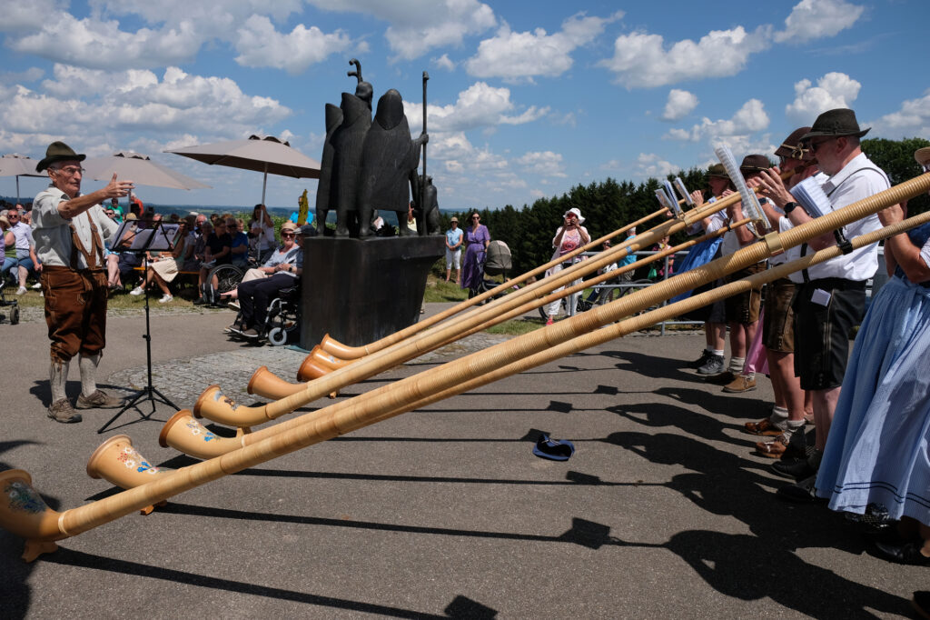 Alphornklänge an der Skulptur der drei Allgäu-Heiligen. Foto: Barbara Waldvogel