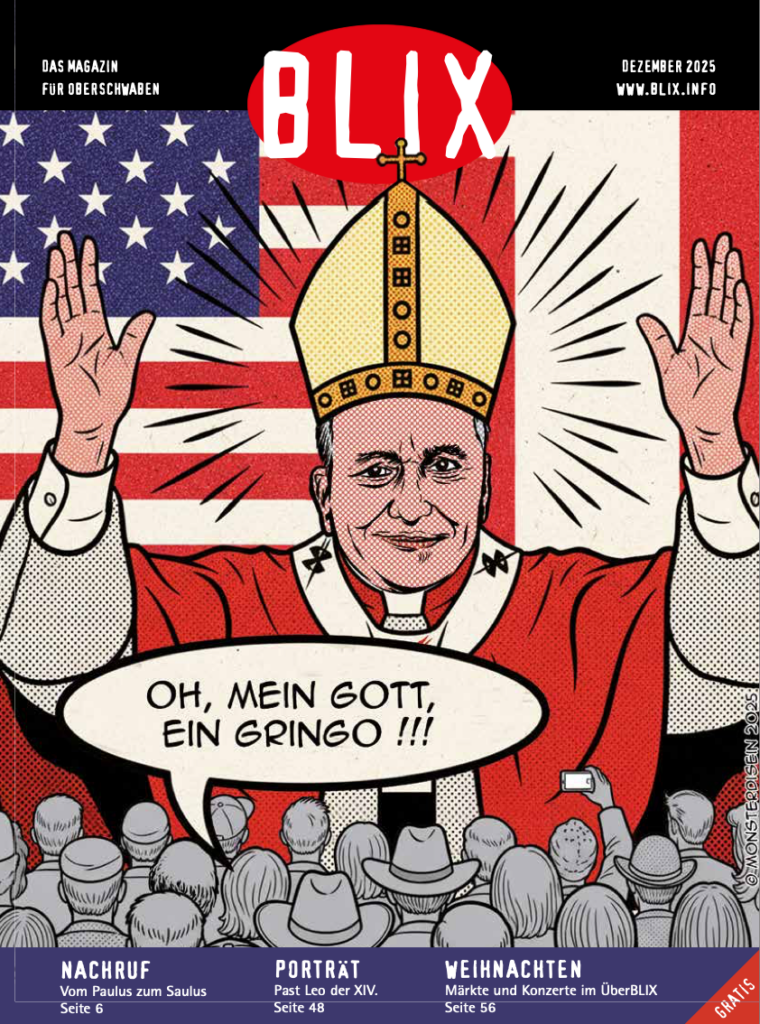 Aulendorf (rei) – Ein starkes Heft haben Roland Reck und sein Blix-Team soeben herausgebracht. Im Mittelpunkt stehen das Aus für das Biosphärengebiet und der weiße Rauch in Rom, der im Mai aufgestiegen war. Vatikan-Experte Bernhard Müller war an jenem denkwürdigen Abend auf dem Petersplatz und hat das Zeichen über der Sixtinischen Kapelle live miterlebt. Im neuen Blix gibt er eine erste Einschätzung des Pontifex.