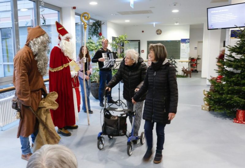 Aulendorf – Am Vorabend des 6. Dezember war der Hl. Nikolaus mit seinem Knecht Ruprecht im Wohnpark St. Vinzenz in Aulendorf zu Gast. Mit Geschichten, Weihnachtsliedern und einem kleinen Geschenk erfreute das Duo „von drauß’ vom Walde“ 50 Bewohnerinnen und Bewohner sowie Gäste der Tagespflege, die sich dazu im Foyer erwartungsfroh versammelt hatten.