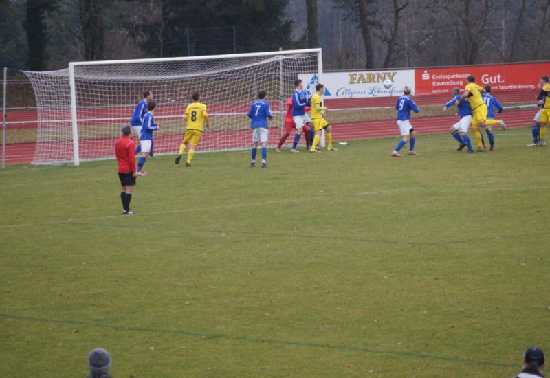Aulendorf – Die Gäste kamen gleich hellwach aus der Kabine und hätten bereits in der ersten Spielminute beinahe die Führung erzielt, doch ein Kopfball von Brändle ging knapp neben das Tor. In der 6. Spielminute war es dann so weit und die Gäste gingen mit 1:0 in Führung. Zuerst konnte der SGA-Torhüter Sebastian Ludwig einen Ball von Mütz noch entschärfen doch der Ball prallte vom Fuß von David Gaus unglücklich ins eigene Tor.