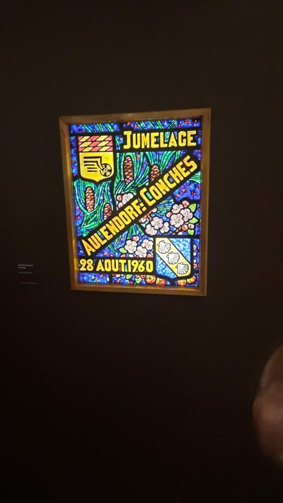Glasfenster Leihgabe der Stadt Aulendorf zu Ausstellung im Musée du Verre in Conches – “2025 année Décorchemont”. Foto: Lothar Maucher