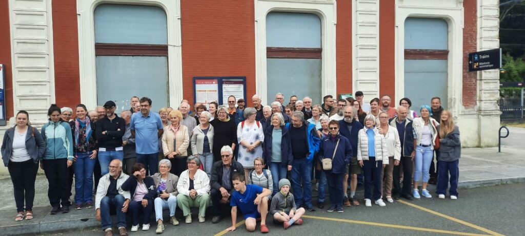 Gesamtgruppe vor der Abfahrt am Bahnhof in Conches. Foto: Lothar Maucher