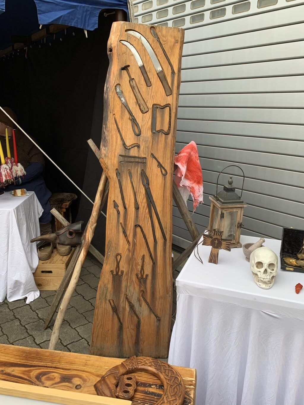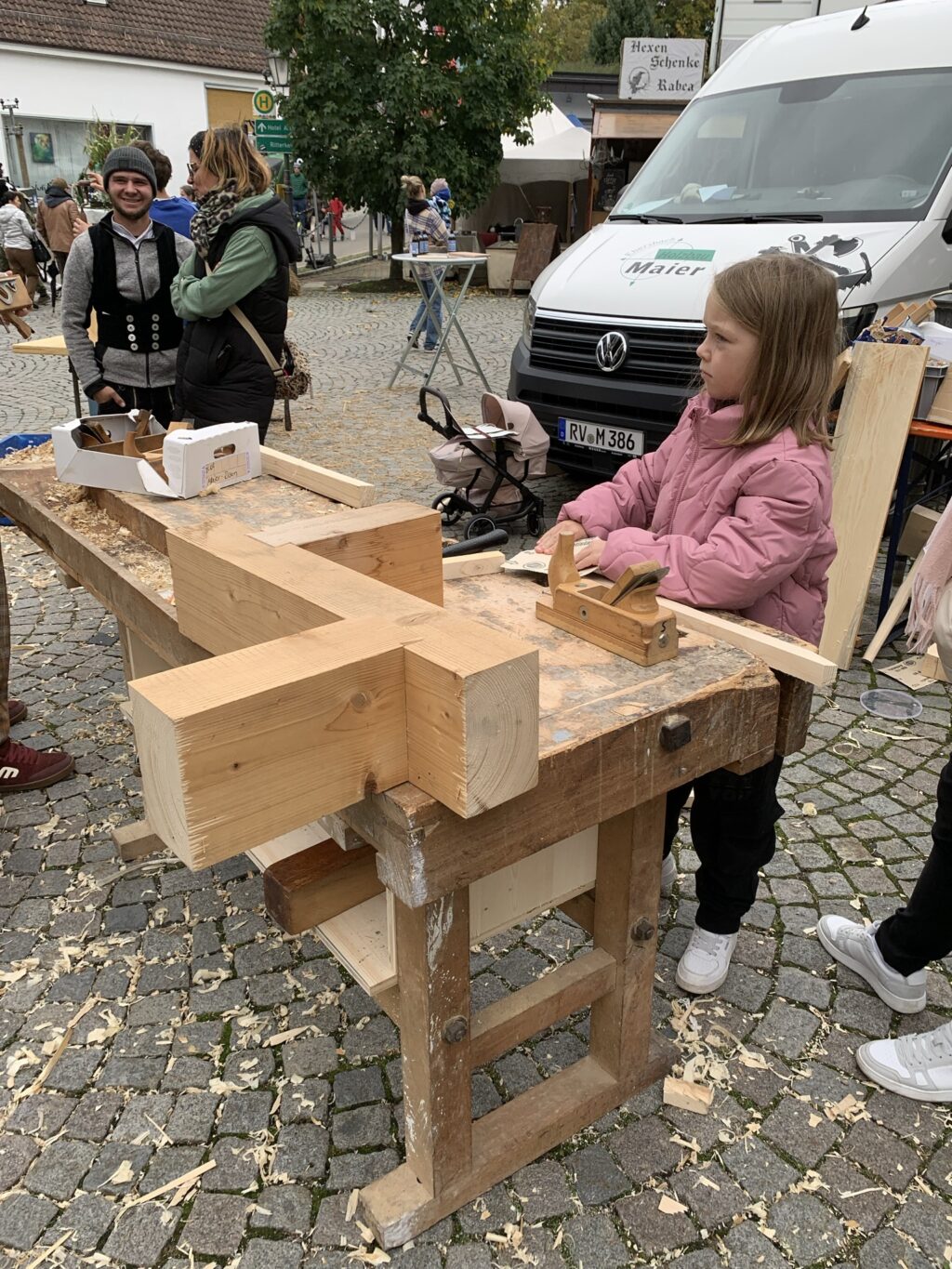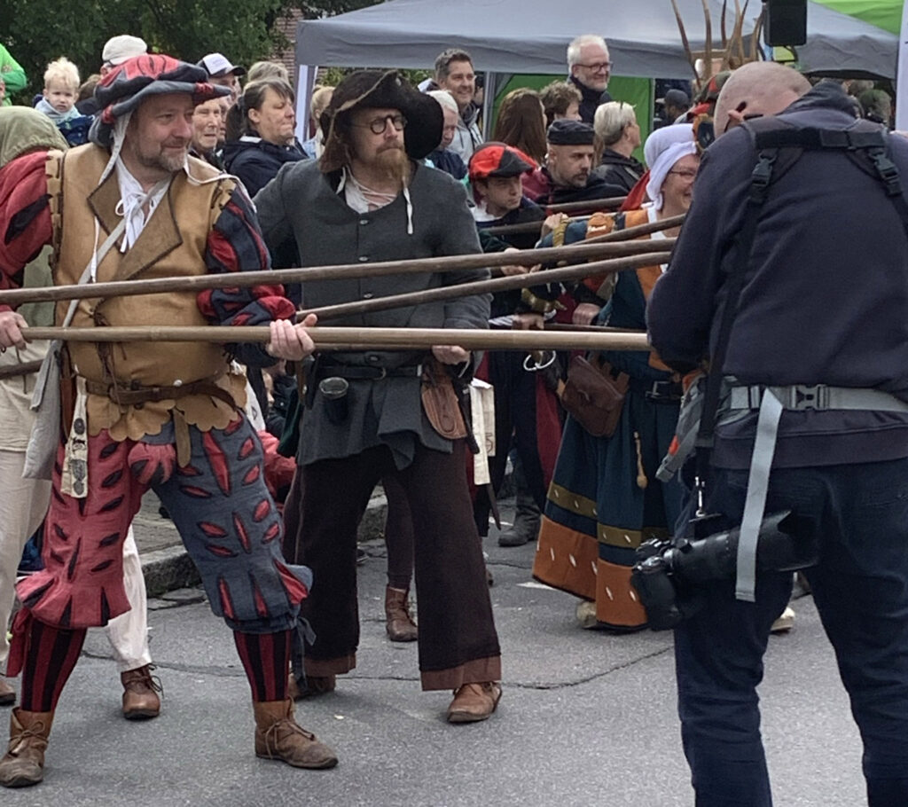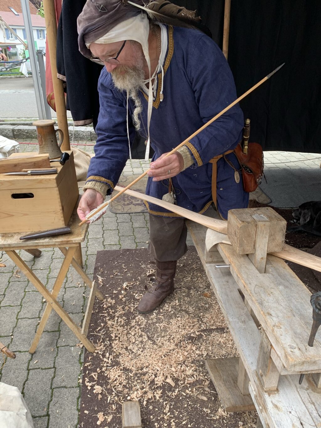 Draußen auf dem Platz hatte sich der Seehaufen mit Schwertkämpfern, mit Gaukler Fraxinus und Handwerkern in mittelalterlichen Gewändern breit gemacht. Auch die Tannhauser Fanfarengruppe erfreute Gäste und Seehaufen. Ein hochbegehrtes Glücksrad versprach tolle Gewinne und Kinderbasteln gab es obendrein. Man sah die Hexenschenke, Buchdrucker, Seilmacher, Schnitzer, Pfeil- und Bogenmacher, Wachszieher, Graskorbflechter, Kettenhemdenmacher, Zimmerleute und natürlich wurden auch leckere Dinnete für jeden Geschmack feilgeboten. Mittelalter im Schatten des Schlosses und zwischen Arthus und Wassermühlenrad der Herrenmühle war überzeugend und authentisch zu spüren.