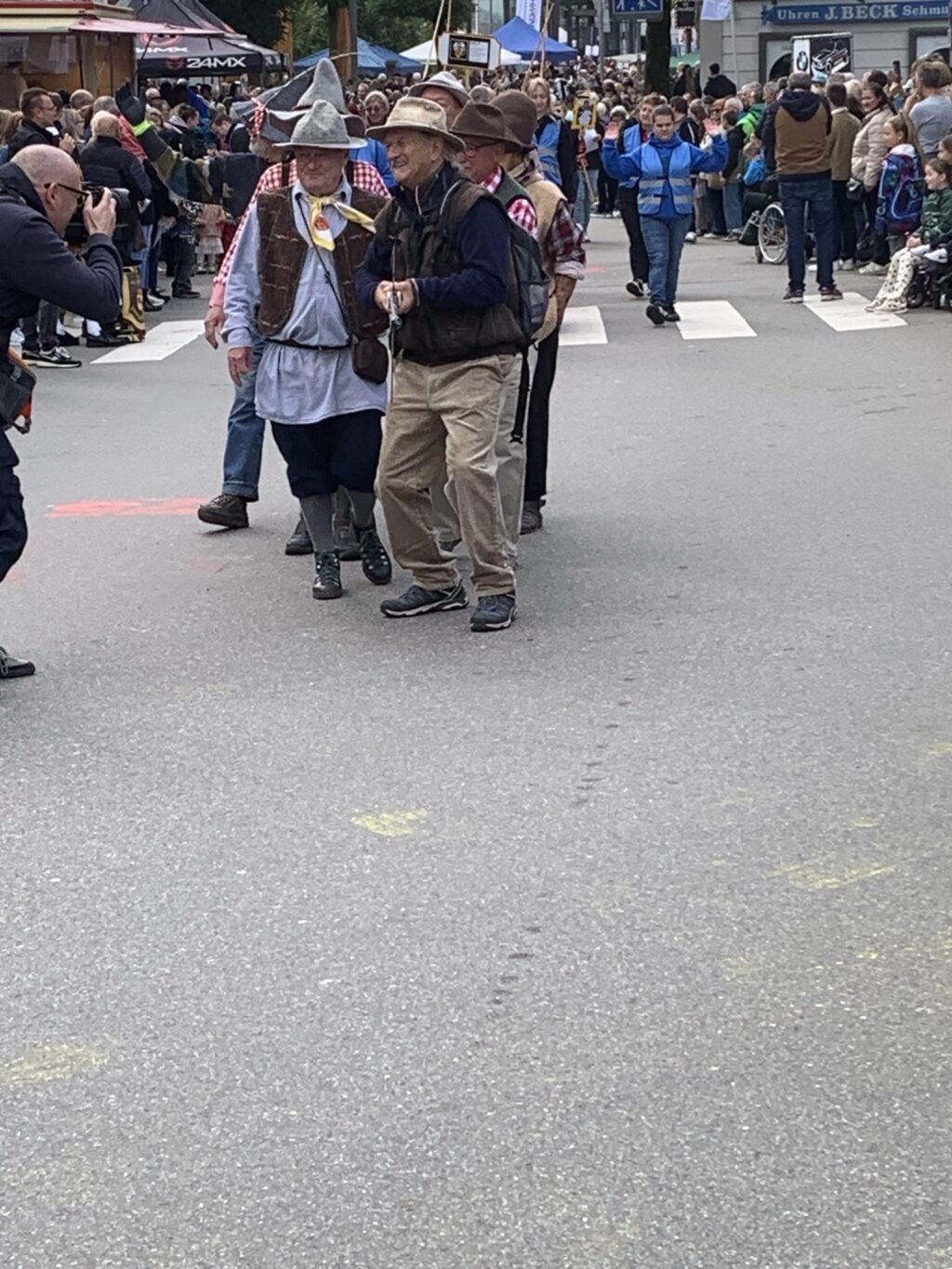 Auch die Sangeskunst Burths wurde geprüft! Er solle bitte mit Weißenrieder und Angele zusammen mit allen Besuchern die Aulendorfer Stadthymne „I bee an Auladorfer, i bee was Bsonderes“, begleitet von der Stadtkapelle, intonieren. Am sichersten klappte es natürlich beim Refrain. Schließlich dankte der Bürgermeister allen, die dieses Fest ermöglicht haben, insbesondere dem Betriebshof, den Bediensteten der Stadt, der Freiwilligen Feuerwehr, der Polizei den Firmen, den Vereinen und dem bereits erwähnten Organisationsteam Bachmann/Johler, das so viel Freizeit geopfert hatte.