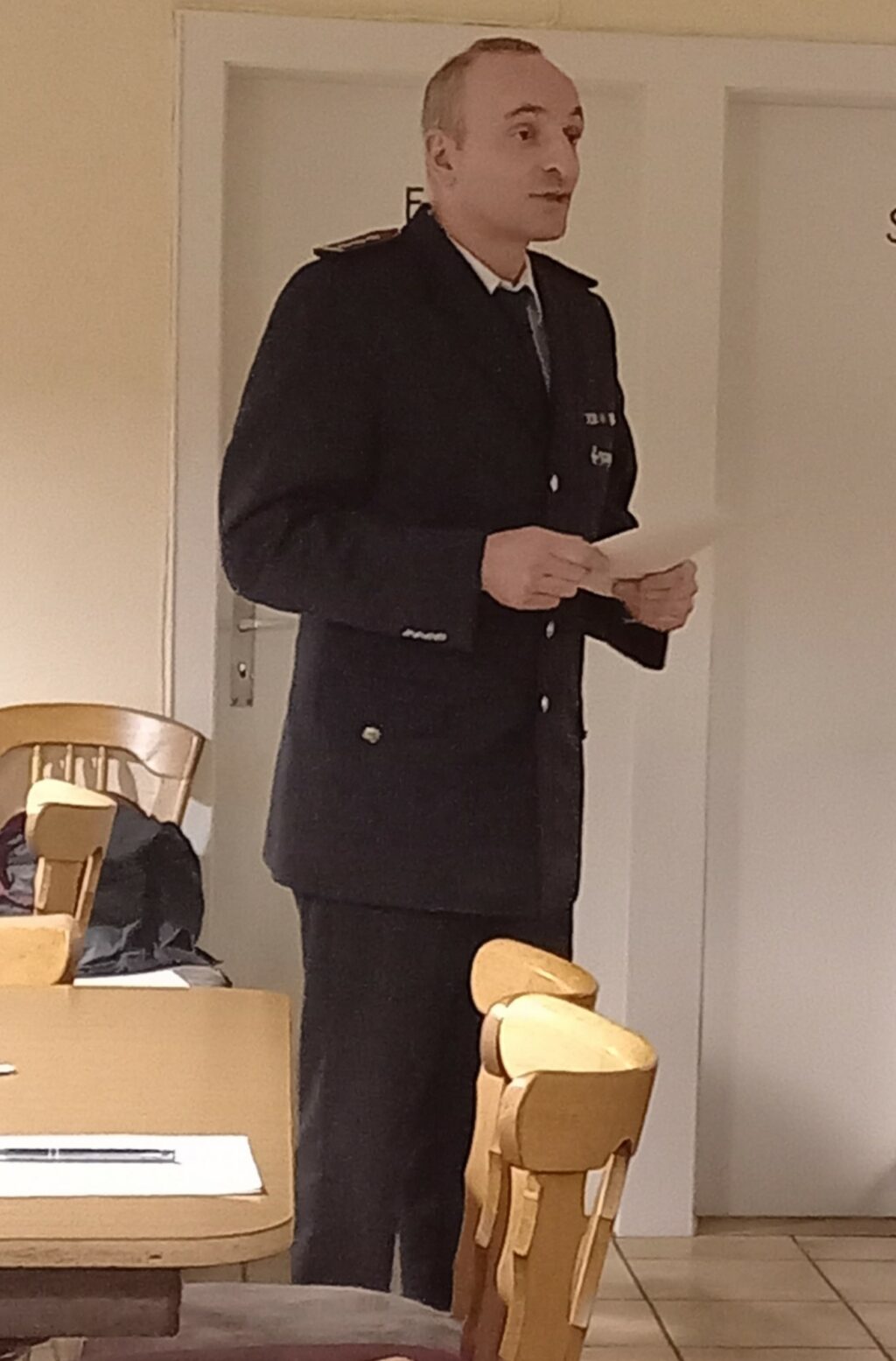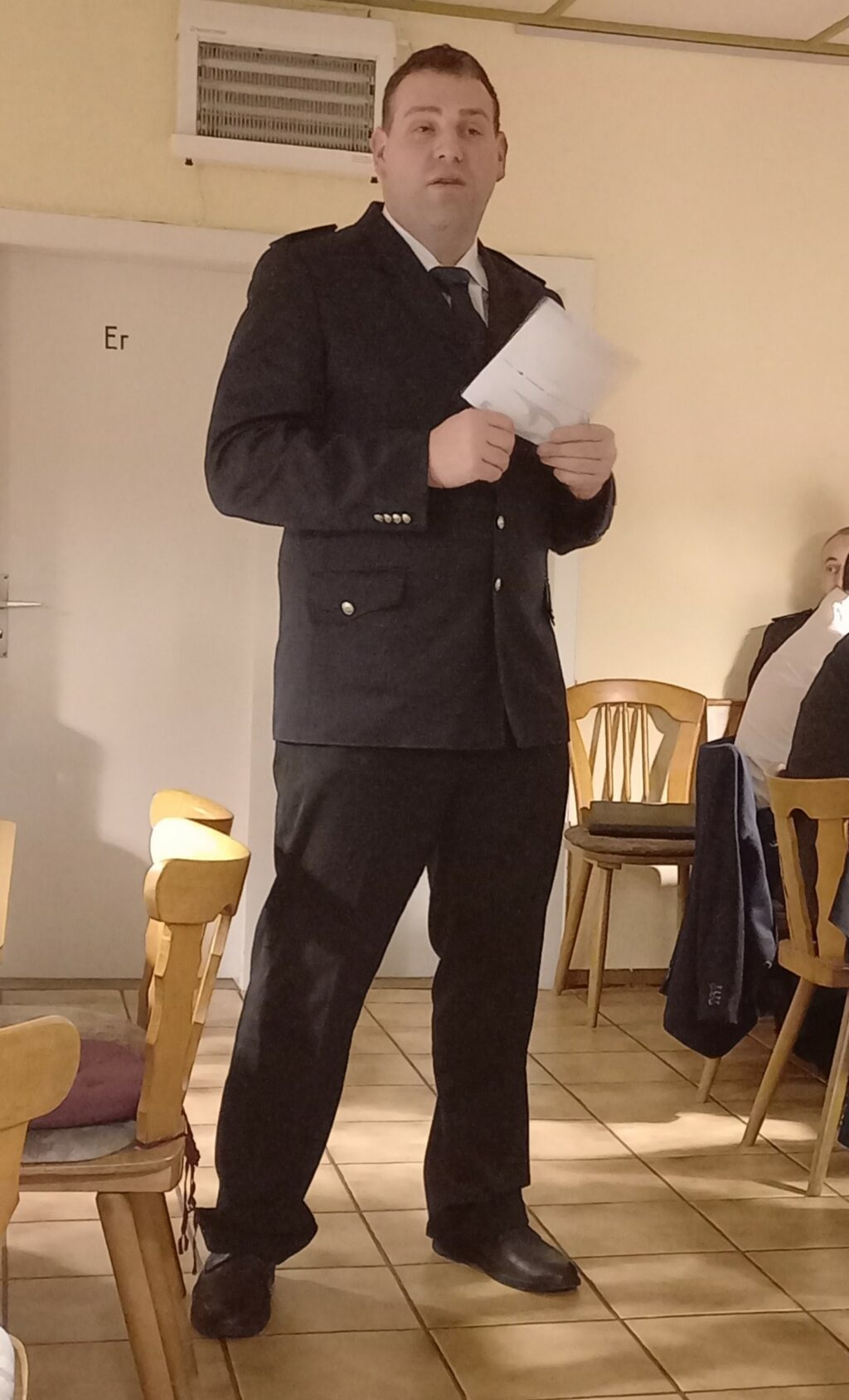 Gesamtkommandant Martin Seifert richtete seine Worte an die fast vollständig anwesenden Männer der Abteilung Tannhausen. Er korrigierte die vom Schriftführer genannte Anzahl der Einsätze der Abteilung im vergangenen Jahr auf insgesamt 9 Einsätze nach oben. Als besonderen Einsatz hob er den nächtlichen Löscheinsatz in der Sammelunterkunft Schussenrieder Straße hervor. Das Feuer war zwar klein und schnell gelöscht, und die meiste Arbeit hatte die Stadtverwaltung mit der Unterbringung der nun plötzlich obdachlos gewordenen zahlreichen Bewohner, aber es hätte sich auch ganz anders entwickeln können – Er war froh, dass so viele gut ausgebildete schlagkräftige Kameradinnen und Kameraden zur Verfügung standen – auch wenn nur wenige tatsächlich eingesetzt wurden.