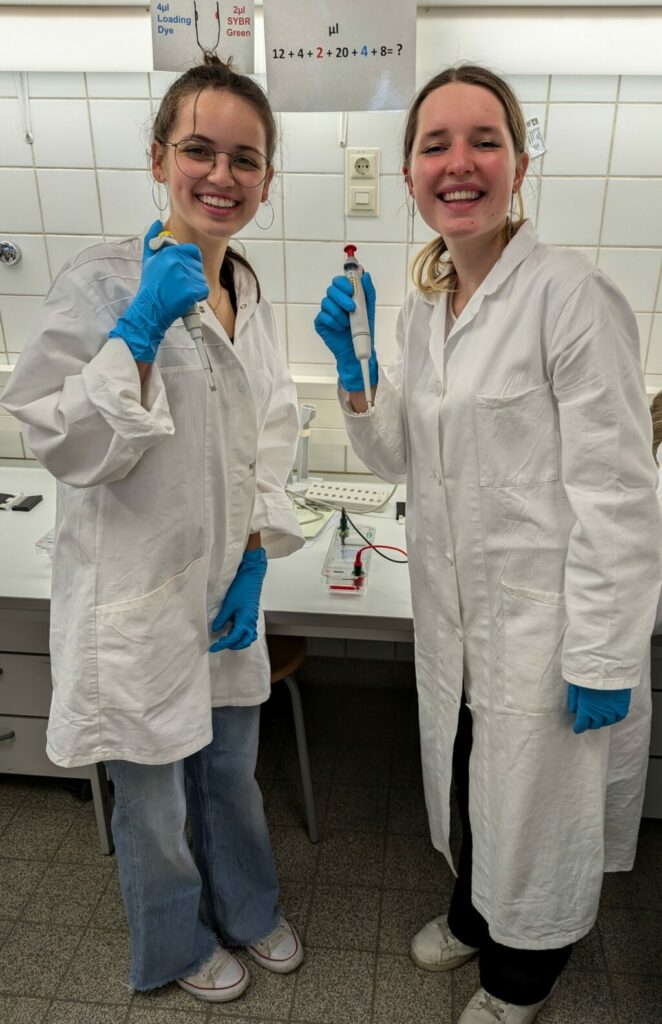 Mit viel Engagement und Neugierde wurde pipettiert, die entstandenen DNA-Bandenmuster analysiert und ausgewertet, um den “Täter” zu identifizieren. Die Arbeit im Labor war nicht nur lehrreich, sondern auch unterhaltsam, da wild spekuliert und gewettet wurde, wer der Schuldige sein könnte. Der Nachmittag im Labor bot dem Kurs eine wertvolle praktische Ergänzung zum theoretischen Unterrichtsstoff und förderte das Verständnis für molekularbiologische Techniken. Der gemeinsame Ausflug wurde durch ein geselliges Pizzaessen am Abend abgerundet, das den Teamgeist stärkte und den Tag perfekt ausklingen ließ.