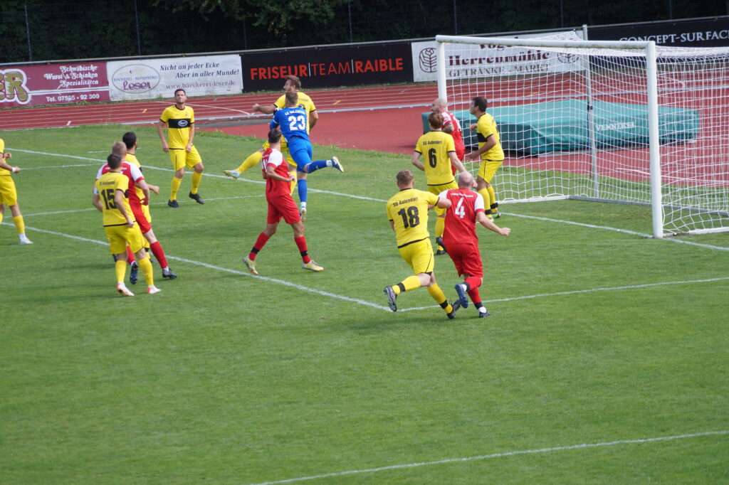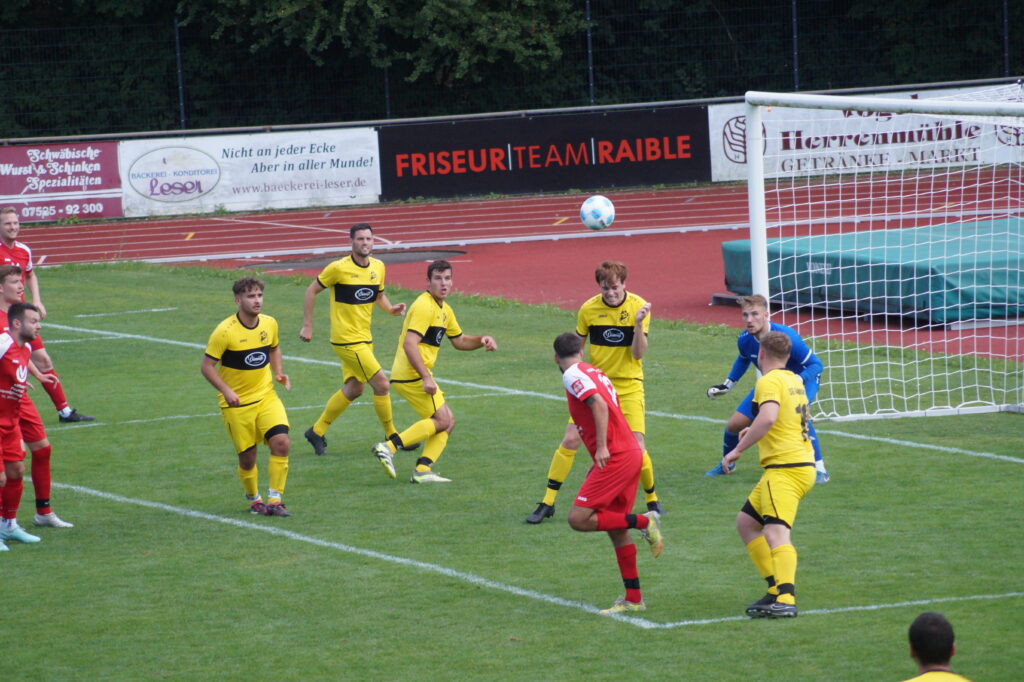 Doch die Führung gab den Hausherren nicht die nötige Sicherheit und so übernahmen die Gäste allmählich das Spielgeschehen. Nach 24 Minuten glich Marc Reinhart zum 1:1 aus. In der 33. Minute musste Thomas Strommer den Ball nur noch zum 1:2 über die Torlinie schieben da sich Aulendorfs Abwehrspieler und der Torhüter gegenseitig behinderten. Mit diesem Rückstand der Heimelf wurden dann die Seiten gewechselt.