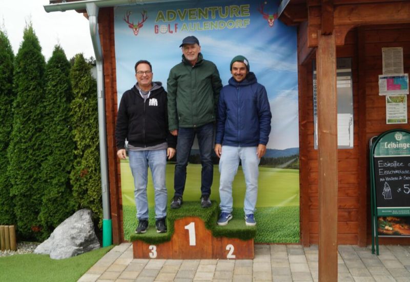 Auf jeden Fall zeigten die Jungs ausnahmslos, dass sie nicht nur das Spiel mit dem „großen“ Ball sehr gut beherrschen, sondern auch mit den viel kleineren Bällen auf der Adventure-Golf-Anlage hervorragend zurecht kommen. Die Anlage selbst machte allen AH-Größen tatsächlich einen Riesenspaß und kann demzufolge von uns für einen Besuch nur wärmstens (weiter)empfohlen werden. Nach über 2,5-stündigem Spielspaß und teilweise illustrer Balleinlochpassagen stand dann das finale Endergebnis der Truppe fest. Am Ende konnte sich in seiner unnachahmlich militärisch akribischen Zielgenauigkeit unser Sportkamerad Egon Madlener knapp vor den beiden Jochen`s, AH-Leiter Jochen Hartnagel und Jochen Haas, durchsetzen und behaupten.