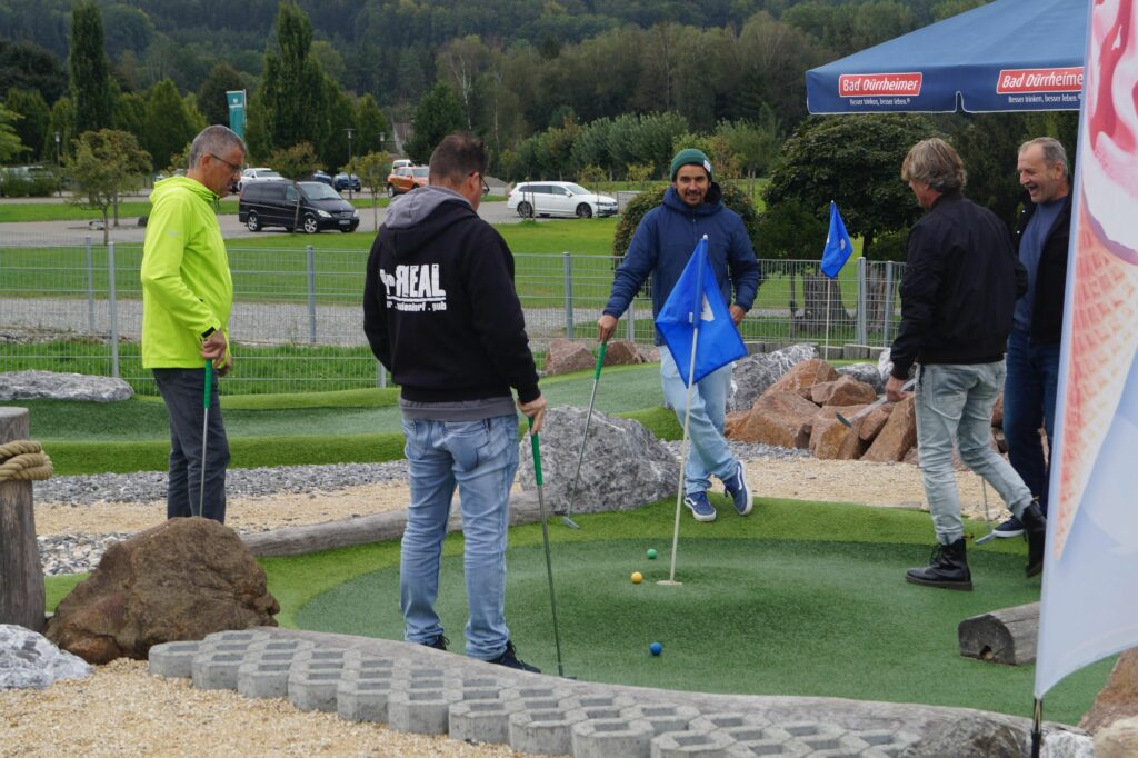 Aulendorf – Am Samstag, 14. September, trafen sich die Kameraden der SGA-AH-Fußballer zu ihrem Jahresausflug 2024 auf der Adventure Golf-Anlage in Aulendorf. Sehnsüchtig wurde dieser Ausflugstag von allen erwartet, lag doch der letzte gemeinsame AH-Ausflug bereits mehrere Jahre zurück. Bei eigentlich idealem Fußballwetter, aber eben nicht ganz idealem Golfwetter, waren dann final leider nur 10 Fußballkameraden der AH am Start. Wobei die Teilnehmerzahl eigentlich, gemessen an der wöchentlichen Trainingsbeteiligung, dann doch schon kurz vor gut war 😊.