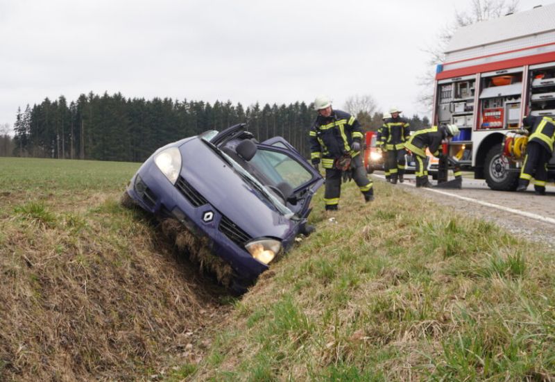 Die 28-Jährige war mit ihrem Renault-Clio von Aulendorf kommend auf der K 8034 Richtung Michelwinnaden unterwegs, als sie auf Höhe von Lippertsweiler aus unbekannter Ursache nach rechts von der Straße abkam und mit ihrem Fahrzeug in einem anderthalb Meter tiefen Graben landete. Die Feuerwehr musste das Dach öffnen, um sie zu befreien. Mit Verdacht auf HWS (Halswirbelsyndrom) kam sie in ein Krankenhaus. Am Fahrzeug entstand Totalschaden in Höhe von 10.000 €.