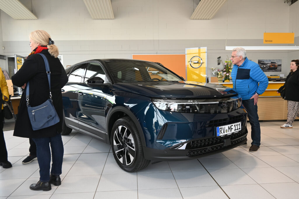 Nein, die Firleys hatten nicht nur Oldies in der Ausstellung. Auch die neuen Opel-Modelle standen teils in der Halle, teils im Freigelände. Ganz aktuell der neue Grandland und der Astra Sports-Tourer. Nachdem sich Opel in der Stellantis-Familie quasi neu erfunden hat, wetteifern brandaktuelle Modelle in allen Motorisierungs-Varianten vom Mild-Hybrid über den Hybrid bis zum reinen E-Antrieb zu Preisen ab 8000 Euro für den knuddeligen Rocks Electric über die bekannten Mokka und Astra bis zum neuen Frontera und Grandland um die Gunst des Publikums.