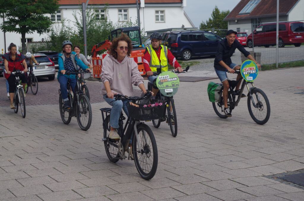 15.30 Uhr Freitagnachmittag am Treffpunkt der Fahrraddemo am Schloßplatz versammelt sich eine bunte Truppe von Fahrradfahrer:innen jung und alt, auch einige aus den umliegenden Orten Bad Schussenried und Bad Waldsee werden gesehen. Von einem Polizeiwagen angeführt zieht sich eine mehrere hundert Meter lange Schlange der rund 60 Teilnehmer:innen durch die Hauptstraße und die