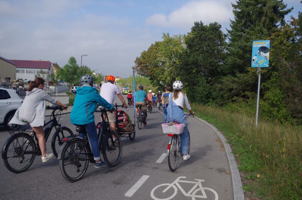 15.30 Uhr Freitagnachmittag am Treffpunkt der Fahrraddemo am Schloßplatz versammelt sich eine bunte Truppe von Fahrradfahrer:innen jung und alt, auch einige aus den umliegenden Orten Bad Schussenried und Bad Waldsee werden gesehen. Von einem Polizeiwagen angeführt zieht sich eine mehrere hundert Meter lange Schlange der rund 60 Teilnehmer:innen durch die Hauptstraße und die