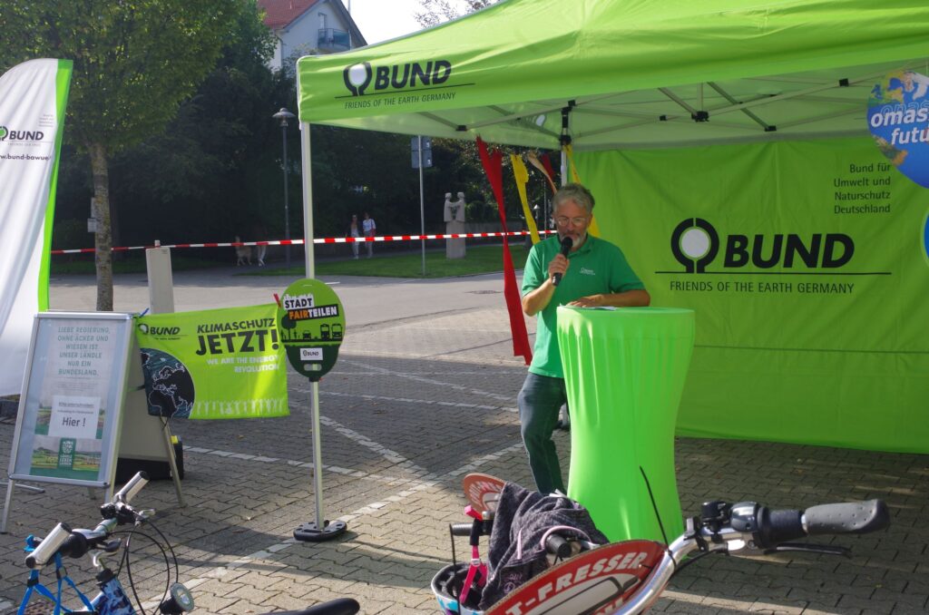 Allein in Deutschland sind in 250 Orten Demos und Aktionen angekündigt, die von der Politik mehr Ehrgeiz im Kampf gegen die Klimakrise einfordern. Gemeinsam rufen die Fridays for Future, der BUND-Aulendorf, BUS und erstmals Omas for Future zur Rad-Demo in Aulendorf auf. Sie haben sich zum Ziel gesetzt, den Stillstand beim Thema Mobilität zu beenden und fordern ein Tempolimit, mehr Platz fürs Fahrrad, Förderung des öffentlichen Fern- und Nahverkehrs. Drei Maßnahmen, die schnell umsetzbar wären, so der BUND-Vorsitzende und BUS-Kreisrat Bruno Sing, statt wie Verkehrsminister Wissing 145 Autobahnprojekte beschleunigt ausbauen zu wollen.