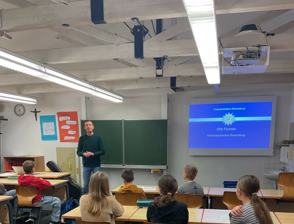 Blönried – In einer digitalen Welt, in der fast jede Schülerin und jeder Schüler ein Smartphone besitzt, wird die Aufklärung über den sicheren Umgang mit der digitalen Welt immer wichtiger. Daher führt das Studienkolleg St. Johann für die Klassen 5 eine Medienprävention durch. Herr Füchsle von der Polizei Ravensburg gestaltete in diesem Rahmen einen interaktiven Präventionsvortrag für die Klasse 5a.