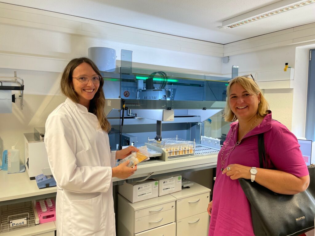 Dabei haben Amtsleiter Thomas Miller und zahlreiche Laborleiterinnen bei einem Rundgang durch die Labore des Diagnostikzentrums über verschiedene Tiergesundheitsthemen informiert. Isabel Kling, die in Altshausen ganz in der Nähe von Aulendorf aufgewachsen ist, konnte sich so persönlich von der Leistungsfähigkeit der beiden Einrichtungen überzeugen. „Die Erhaltung der Tiergesundheit und der gesundheitliche Verbraucherschutz sind der Landesregierung ein großes Anliegen. Das „Tierärztliche“ – wie die Aulendorfer die beiden Einrichtungen gerne nennen – leistet dabei einen wesentlichen Beitrag zur Tiergesundheit und übernimmt somit eine wichtige Funktion im gesundheitlichen Verbraucherschutz. Nur von gesunden Tieren lassen sich sichere Lebensmittel gewinnen“, hob die Amtschefin des MLR hervor.