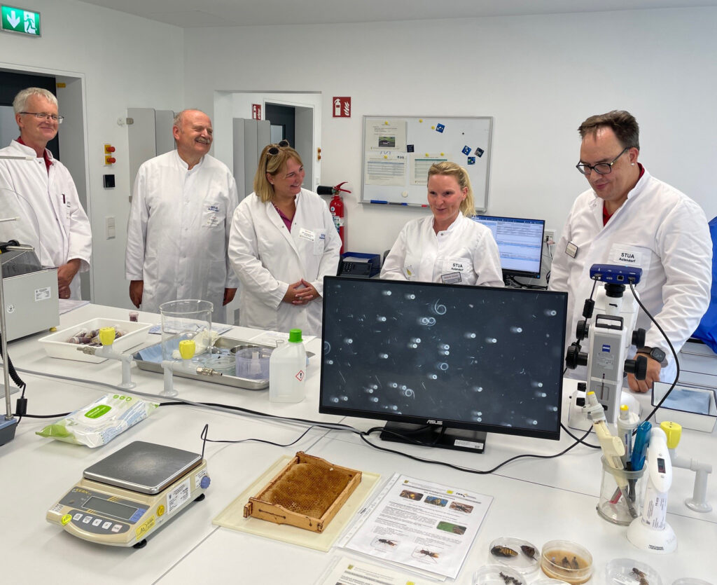 Bienengesundheitsdienst (Kling, Neumann, Miller, von links), Bild: STUA Aulendorf – Diagnostikzentrum, Thomas Miller