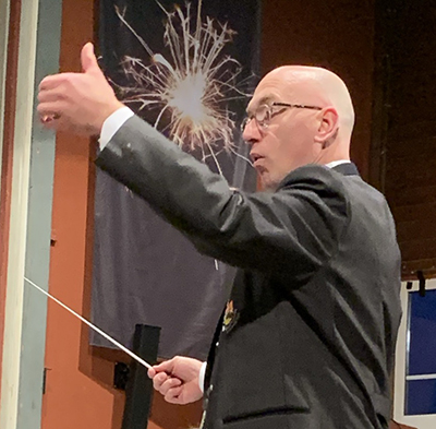 „Klezmer Karnival“ (Philip Sparke) beendete Teil I des Neujahrskonzerts. Martin Gallasch führte in diese besondere und leider selten gewordene Musikrichtung ein. Es handelt sich um eine Musiktradition des osteuropäischen Judentums. Sie vermittle zugleich Lachen, Weinen oder Melancholie. Typisch dabei sind wechselnde Rhythmen. Klezmer vermittelt auch Spiritualität oder begleitet Feste und andere Anlässe im Lebenslauf. Klezmer wird eigentlich nur instrumental in kleinen Besetzungen gespielt, heute aber auch in großen orchestralen Ensembles. Die Stadtkapelle arbeitete die erforderliche Instrumentalisierung bzw. den „Gesang der Instrumente“ gekonnt heraus. Sogar der typische Schluchzer am Schluss eines Stückes, diesmal mit menschlichen Stimmen, durfte nicht fehlen.