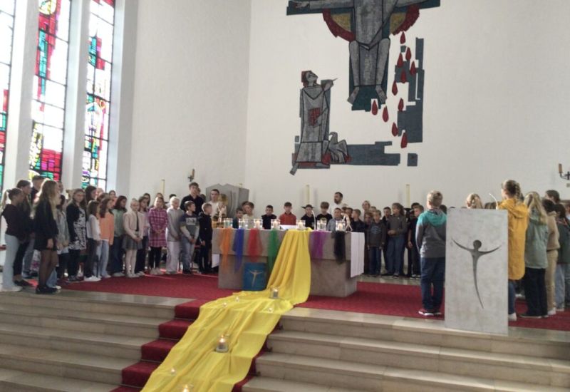 „Denn er befiehlt seinen Engeln, dich zu behüten …“ aus Psalm 91 war das Leitmotiv im Gottesdienst, mit dem Schulseelsorger David Bösl die jüngsten St. Johanner behutsam in das Schulleben einführte. Die Kinder dürfen darauf vertrauen, gut begleitet ihren Weg zu meistern. Dafür stehen die biblischen Worte von Engeln, und dies soll auch immer wieder spürbar werden, indem sich auch die Schülerinnen und Schüler füreinander stark machen. Zur Erinnerung daran erhielt jedes Kind einen Anhänger mit Engel-Motiv, der die Geborgenheit von guten Mächten greifbar macht. Die musikalische Gestaltung durch Herrn Wenzel an der Orgel („Wer unterm Schutz des Höchsten steht“) und die Band aus den Klassen 7 ‚(„Let it be“) griff diese Gedanken immer wieder auf und rundete den Gottesdienst wunderschön und stimmig ab.