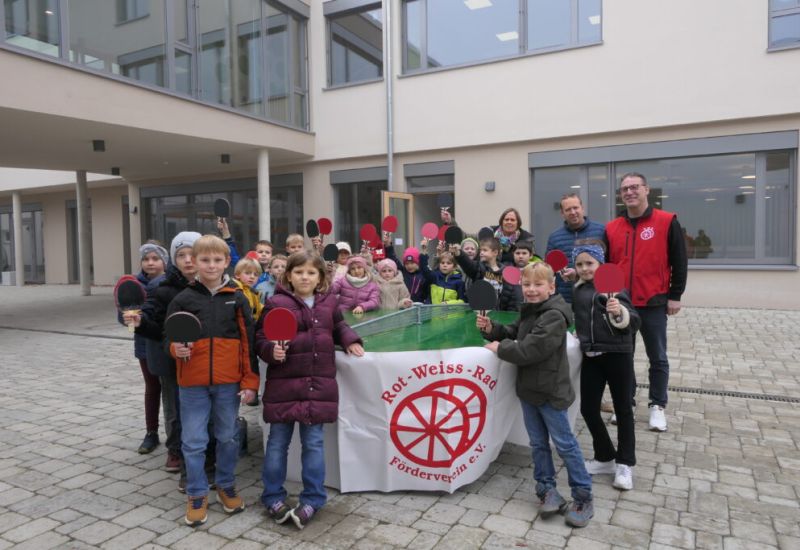 Förderverein Rot-Weiss-Rad spendet runde Tischtennisplatte an die Grundschule Aulendorf