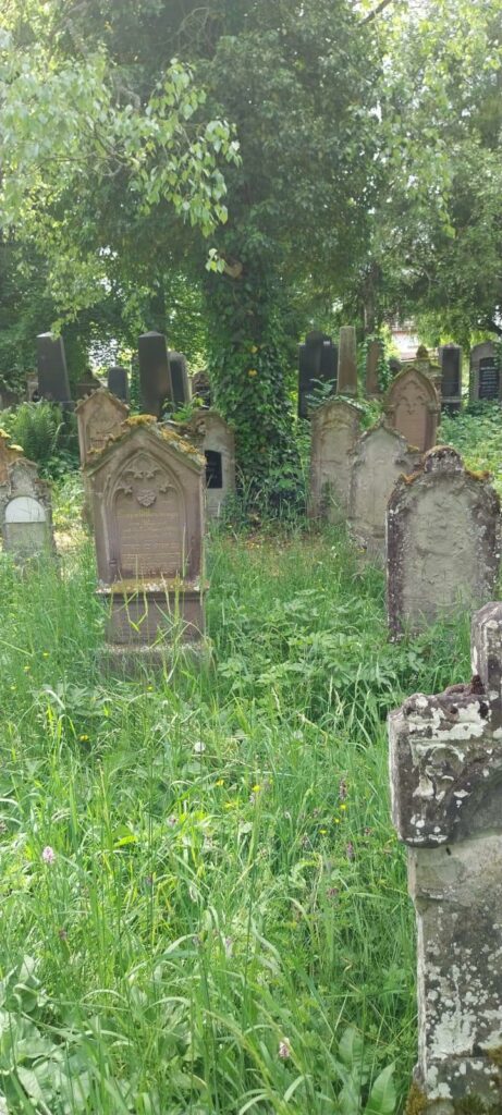 Zu Buchau gehört aber auch das Erbe der vormaligen jüdischen Gemeinde. Als eine der großen im Oberland prägte diese über lange Zeit hin die örtliche Gesellschaft, unterhielt eigene Kultusgebäude mit einer der seltenen „Glocken-Synagogen“. Gleich den anderen Religionsgemeinschaften rief auch hier ein Glockenturm die Gläubigen herbei. Was als Zeichen eines Miteinanders hatte gelten können, fand in den Jahren des NS-Terrors sein grausames Ende. In einem Moment der Stille und des Andenkens erinnerte Rita Dittrich auf dem Stelenfeld des jüdischen Friedhofs an die Ausgrenzung, Verfolgung und Ermordung der jüdischen Mitbürgerinnen und Mitbürger. Keiner von diesen ist hier begraben, aber die verwitterten Inschriften mancher Grabsteine zeugen davon und wirken nach.
