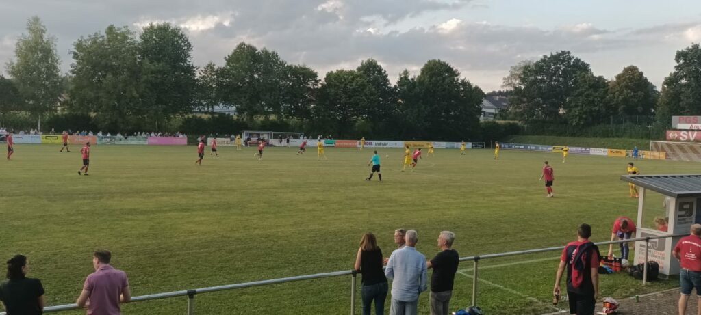 Von Anfang an entwickelte sich beim Bezirksliga-Absteiger ein spannendes Kreisliga A1 Derby. Den besseren Start in die Begegnung erwischten die Gastgeber, ohne jedoch früh in Führung zu gehen Dies machten die Gäste in der 12. Minute dann besser. Nach einem Foul im Mittelfeld ließ der Schiedsrichter Vorteil laufen und David-Noah Rimili schnappte sich den Ball und brachte die SGA in Führung. Allerdings hielt diese Führung nicht lange und der SV Mochenwangen glich durch Fabio Diana in der 16. Minute aus. Danach hatte der SVM wieder etwas mehr Spielanteile, ohne jedoch wieder in Führung zu gehen. In der 37. Minute war dann, nach einem herrlichen Zuspiel von David Gaus, erneut David Rimili zur Stelle und schoss die erneute Führung für die SGA. Mit dieser Führung wurden dann die Seiten zur Pause gewechselt.