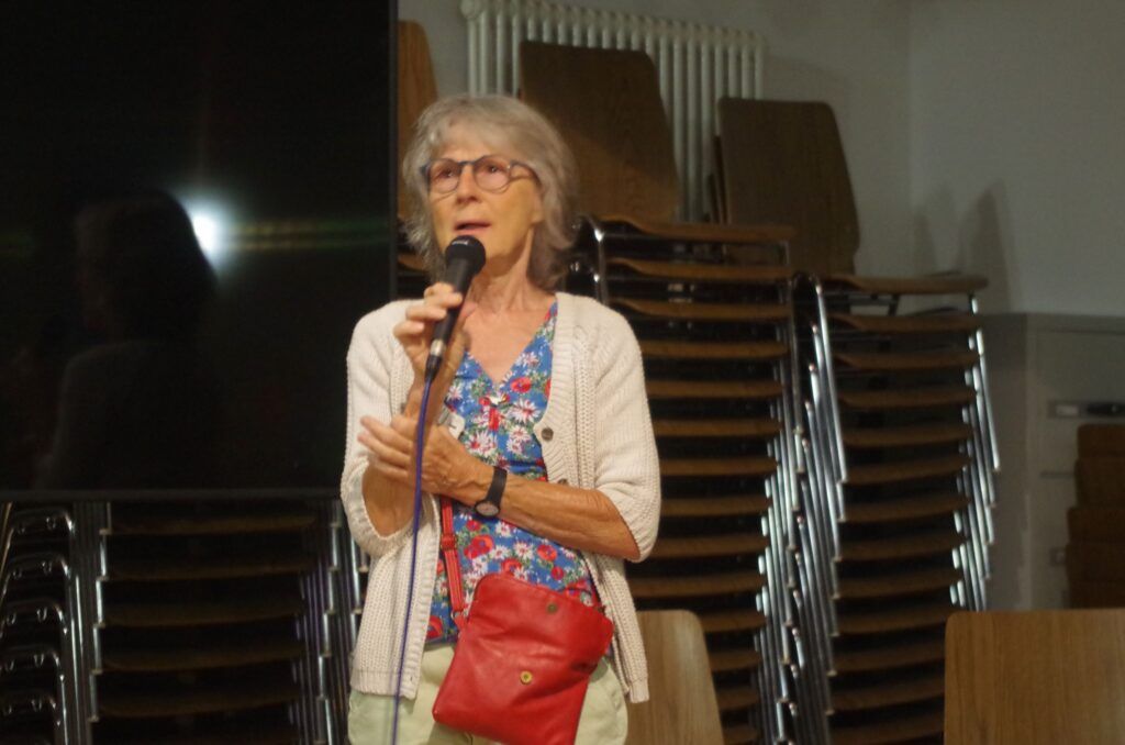 Da sie im Hintergrund bei vielen Aktionen mitgewirkt hat, kann sie authentisch von den Stimmungen der Aktivist*innen berichten. „Das Klima ist kränker als ich“, berichtet sie von ihrem Sohn. Auf die Frage eines Zuschauers, wo der Film zu bekommen wäre, weiß sie auch, dass er über den Kontakt zu den Filmemachern zu beziehen und für Schulen sogar kostenlos sei. Zuletzt habe eine Schulklasse gar eine Woche lang im Camp übernachtet. Bei der vom BLIX-Chefredakteur Dr. Roland Reck moderierten Diskussion mit Gudrun Bosch, Rosemarie Vogt und Prof. Wolfgang Ertel ist viel von Geduld und langen Atem bei den Aktionen die Rede. „Welche Not muss ein Mensch haben“, meint Vogt, die Rentnerin aus Weingarten, die erst seit etwas über einem Jahr die Aktionen begleitet, „so lange im Baumcamp auszuharren“. Ertel, der Professor für künstliche Intelligenz an der Hochschule Weingarten und Begründer der Scientists for Future nennt es Verzweiflung.