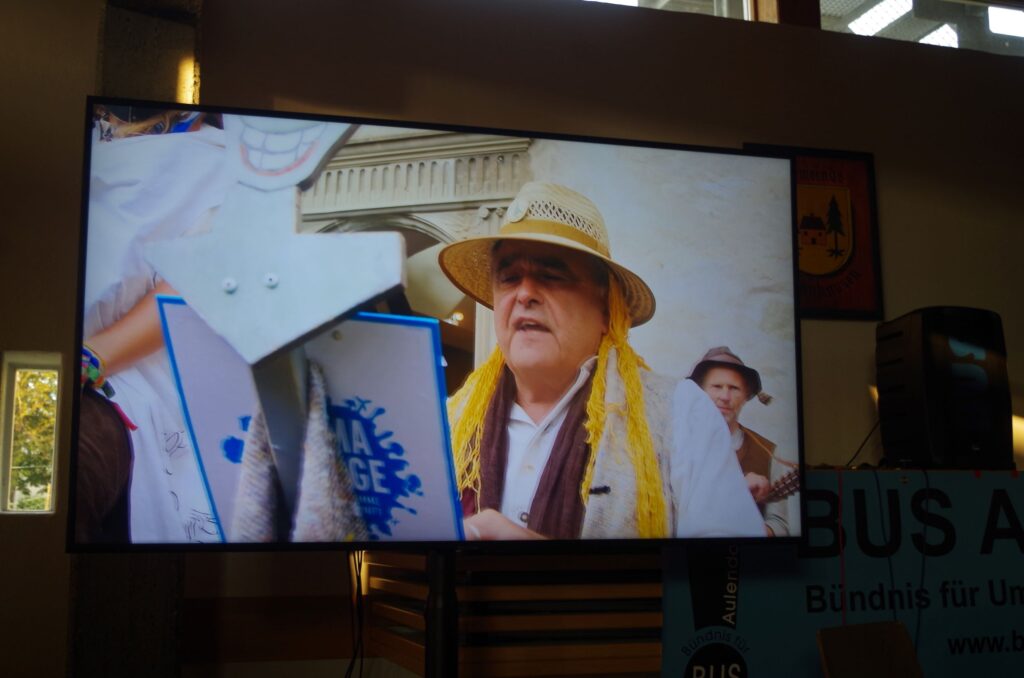 Aulendorf – Am Abend nach der Rad-Demo durch Aulendorf am Klimastreiktag hatte die BUS ins Dorfgemeinschaftshaus Tannhausen eingeladen, wo der Film „Von Menschen, die auf Bäume steigen“ gezeigt wurde. Der Film begleitet die Waldbesetzer Samuel Bosch und Charlie Kiehne und einige ihrer Mitstreiter*innen über 18 Monate auf ihren Aktionen im Altdorfer Wald, beim nächtlichen „Essen retten“ in Weingartens Supermärkten, oder bei Prozesstagen im Amtsgericht Ravensburg. Regie führten die Filmproduzentin Bernadette Hauke und ihr Kollege Christian Fussenegger, der aus Wangen stammt.