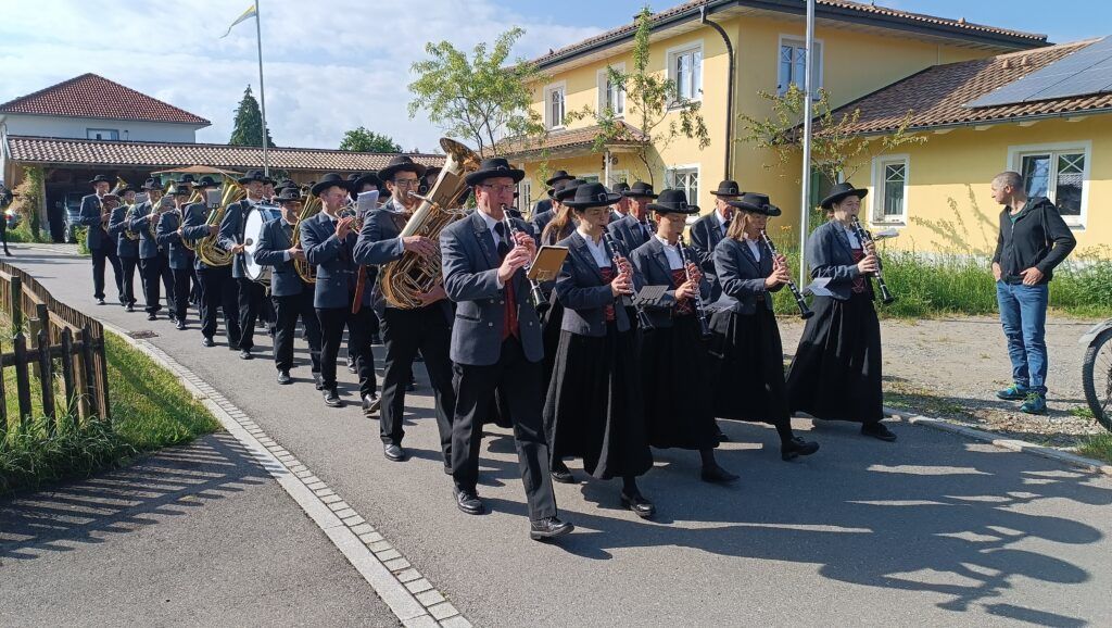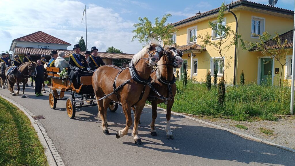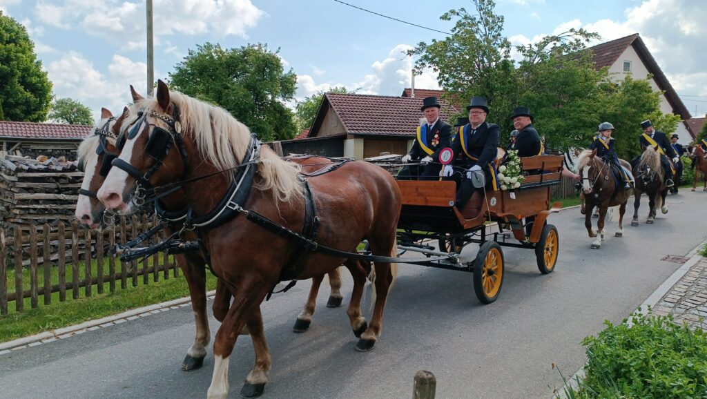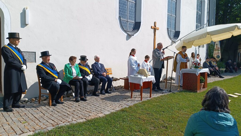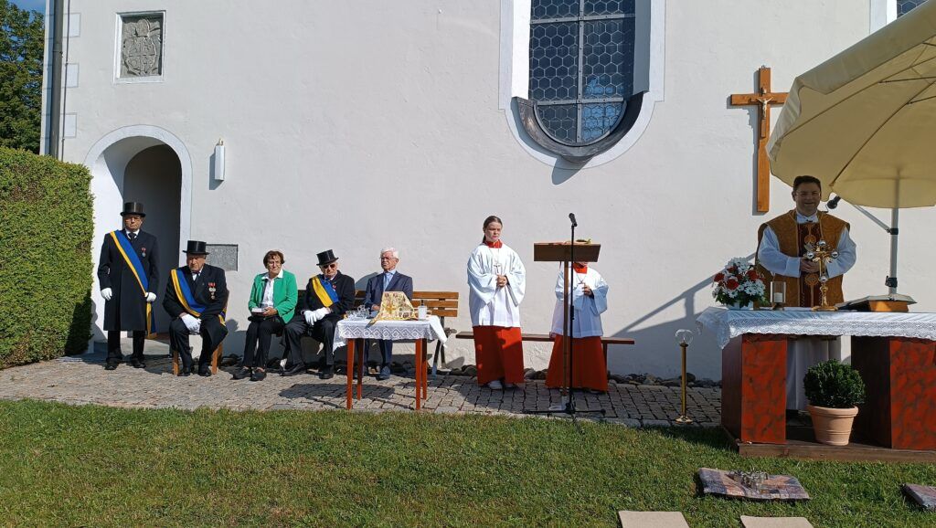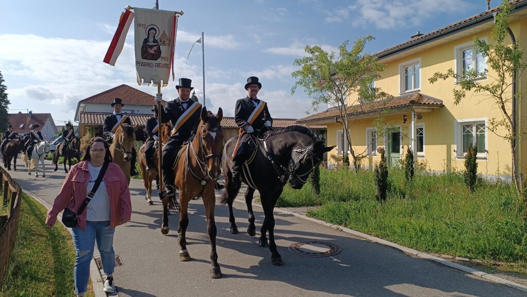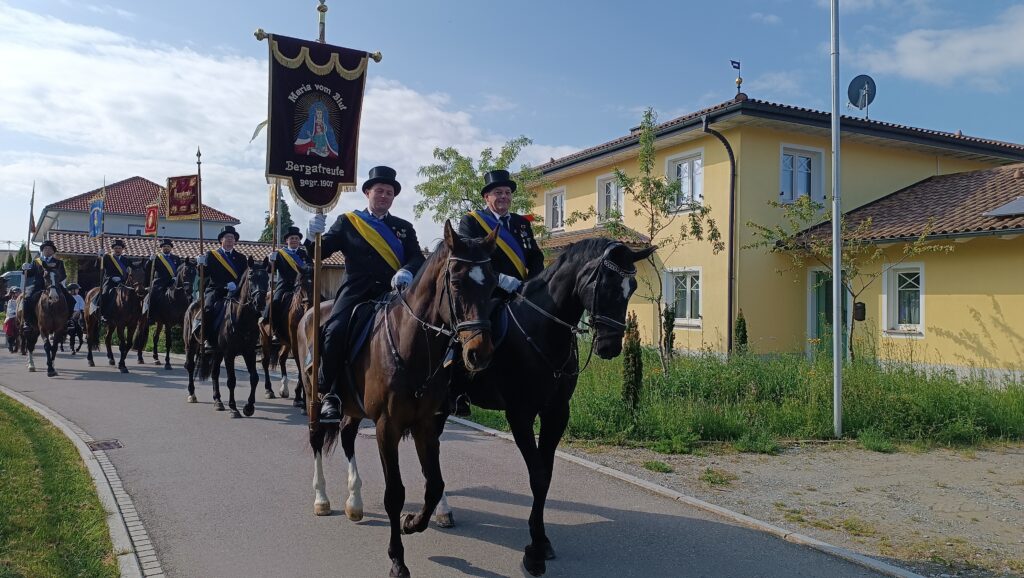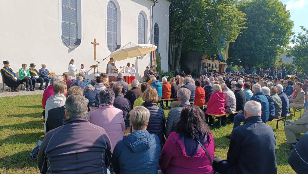 „Was für ein Festwetter“ so ein strahlender Ehrenvorstand Manfred Hoh bei Dankesworten am Schluss. Der erste Satz galt Josef Nold, er stiftete im Jahre 1994 die Fahne mit dem Gnadenbild „Maria vom Blute“. Dank galt auch Elfriede Kempter für den herrlichen Blumenschmuck sowie Monika Hepp für ihr Arbeit als Mesnerin. Im Anschluss an den Ritt und den Gottesdienst ging das Dorffest bei einem gemütlichen Beisammensein mit Blasmusik am Hof Denzler/Sauter weiter. Die Bewirtung erfolgte erstmals von der Bürgerstiftung Bergatreute mit Paul Jung an der Spitze.