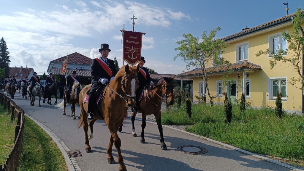 Betend, oder auch nur still hoch zu Ross, führte der Prozessionsweg über Saßholz, Engenreute, Grottbuch und Gambach. Der heilige Georg, sein Namenstag ist am 23. April, gilt als Schutzpatron von Pferden, Reitern, Bauern und Pfadfindern. Die dankmalgeschützte Kapelle zu Gwigg ist dem heiligen Georg geweiht.