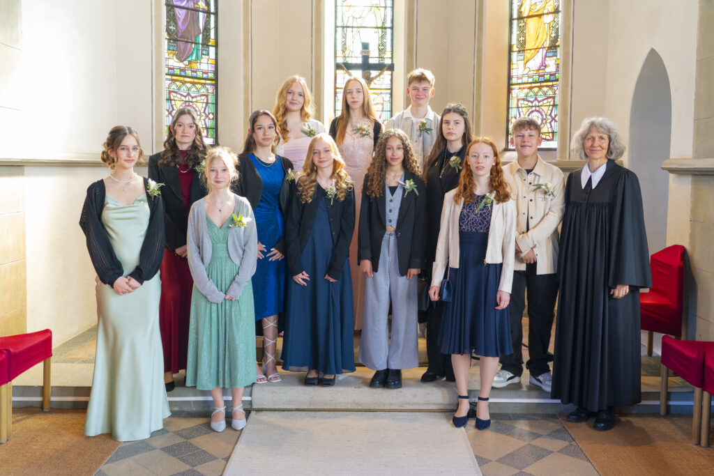 Konfirmandengruppe Pfarrerin Oehme: Emely Aliyev, Luis Bodenmüller, Darja Dalinger, Lara Dechant, Sofie Gueter, Salia Heß, Charlotte Horn, Mila Mahrt, Janina Möhwald, Emil Petersen, Lotta Sandu, Naomi Wespel. Foto: Theresa Petersen