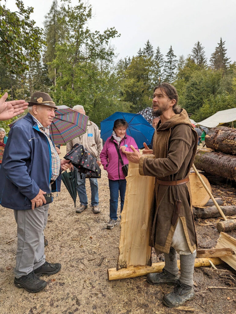 Die Klosterbaustelle Campus Galli, ein einzigartiges Projekt, das den St. Galler Klosterplan aus dem 9. Jahrhundert nachbaut, war das Hauptziel des Ausflugs. Handwerker und Ehrenamtliche arbeiten dort mit den Methoden und Werkzeugen des Mittelalters, um eine authentische Klosterstadt entstehen zu lassen. Die Seniorinnen und Senioren hatten die Gelegenheit, die verschiedenen Werkstätten und Baustellen eigenständig zu erkunden und die faszinierende Handwerkskunst zu bestaunen. Ein besonderes Highlight war die Begegnung mit den Handwerkern, die bereitwillig über ihre Arbeit und die historischen Techniken berichteten. Die imposante Holzkirche beeindruckte viele Besucher und die erstklassige Bewirtung auf dem Marktplatz sowie im Shop am Eingangsbereich fand großen Anklang. Dank der Veranstalter von Campus Galli konnten die Gäste an trockenen Plätzen unter Pavillons und Schirmen ihre Zeit genießen. Zusätzlich zu den regulären Speisen wie Linsensuppe und Honigkuchen wurde eine große Auswahl an Kaffee und Kuchen angeboten.