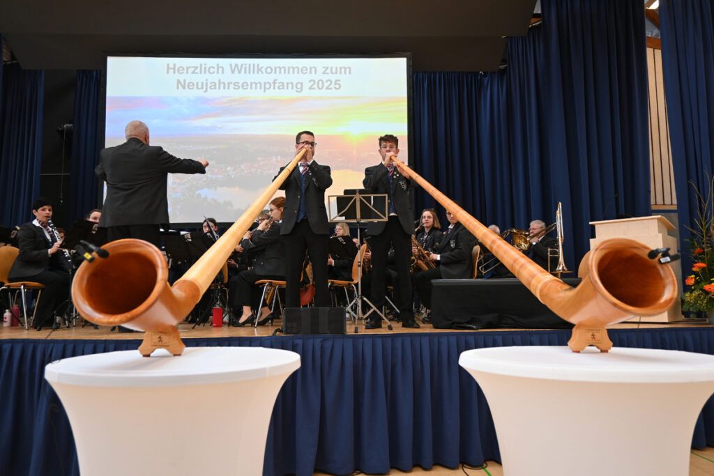Die Stadtkapelle spielte unter der Leitung von Stadtmusikdirektor Joachim Weiss  angenehme Weisen, die Mitarbeiter der Stadt schenkten derweil fleißig Begrüßungsgetränke mit und ohne Alkohol ein. Die Schornsteinfeger boten Glücks-Gebäck in großen Körben dar. Hier und da trafen sich Bekannte. Es wurde geplaudert, man wünschte sich alles Gute fürs neue Jahr.