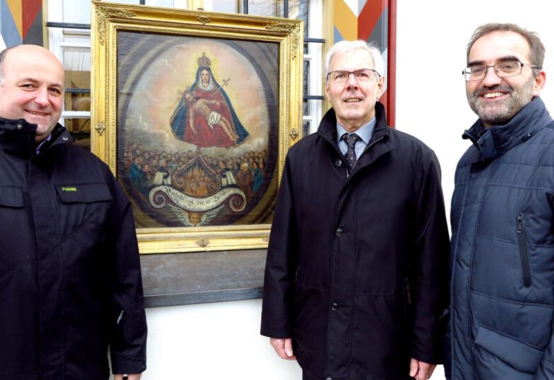 Bei der Versammlung lässt Franz Maucher über den Beitrag abstimmen, der jedes Jahr neu festgelegt wird. 5 Euro gibt jedes Mitglied dafür, dass für die verstorbenen Brüder Messen gelesen werden. Weiter schlägt Maucher vor, die Kosten für die Überholung des Bruderschaftsbildes, ein Gemälde von 1760, auf die 63 Brüder umzulegen. Die 15 € zahlt jeder gerne und alle hoffen, dass „ihr“ Bild – es zeigt die von den Brüdern angeflehte Gottesmutter – bald wieder am angestammten Platz an der rechten Wand der Osterhofer Kapelle hängen wird. Am 11. Dezember 2025 ist der nächste Bruderschaftstag und bis dahin sollte die Osterhofer Kapelle, die derzeit renoviert wird, fertig sein. So recht daran glauben kann Franz Maucher noch nicht, dass das Werk termingerecht gelingen wird.