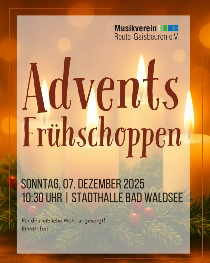 Reute-Gaisbeuren – Der Musikverein Reute-Gaisbeuren lädt am 2. Advent zu einem Adventsfrühschoppen um 10.30 Uhr in die Stadthalle Bad Waldsee ein.