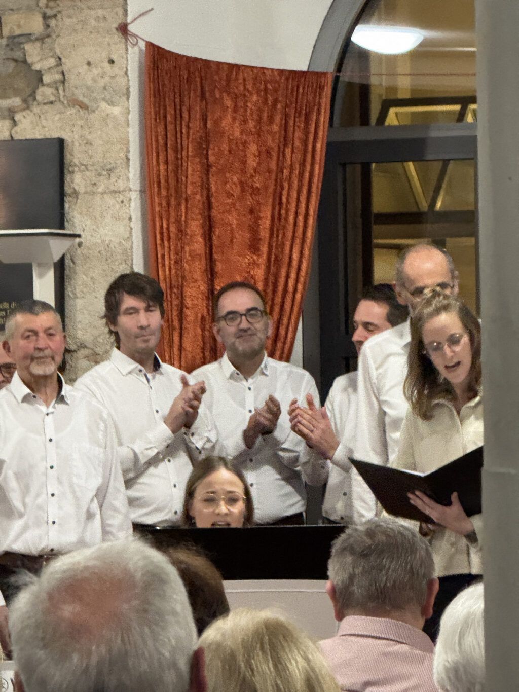 Mit ihren Liedern wie „ Es ist für uns eine Zeit angekommen“, „Dezemberträume“, „Jingle Bell Rock“, Schöne Weihnachtszeit“ bereicherte das Damen-Quartett den Konzertverlauf mit feinstimmigem, stilvollem Gesang . Dafür ernteten die Sängerinnen mächtig Applaus, wie auch das Doppelquartett, besetzt mit Sängern des Männerchors unter Leitung von Pfarrer Stefan Werner, mit ihren Beiträgen wie „Lass mich nah sein bei Dir“ oder auch „ Das kleine Jesuskind“.