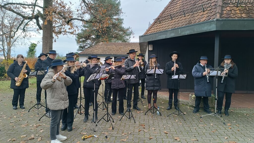 Die Musikkapelle Reute-Gaisbeuren auf dem Reutener Friedhof.