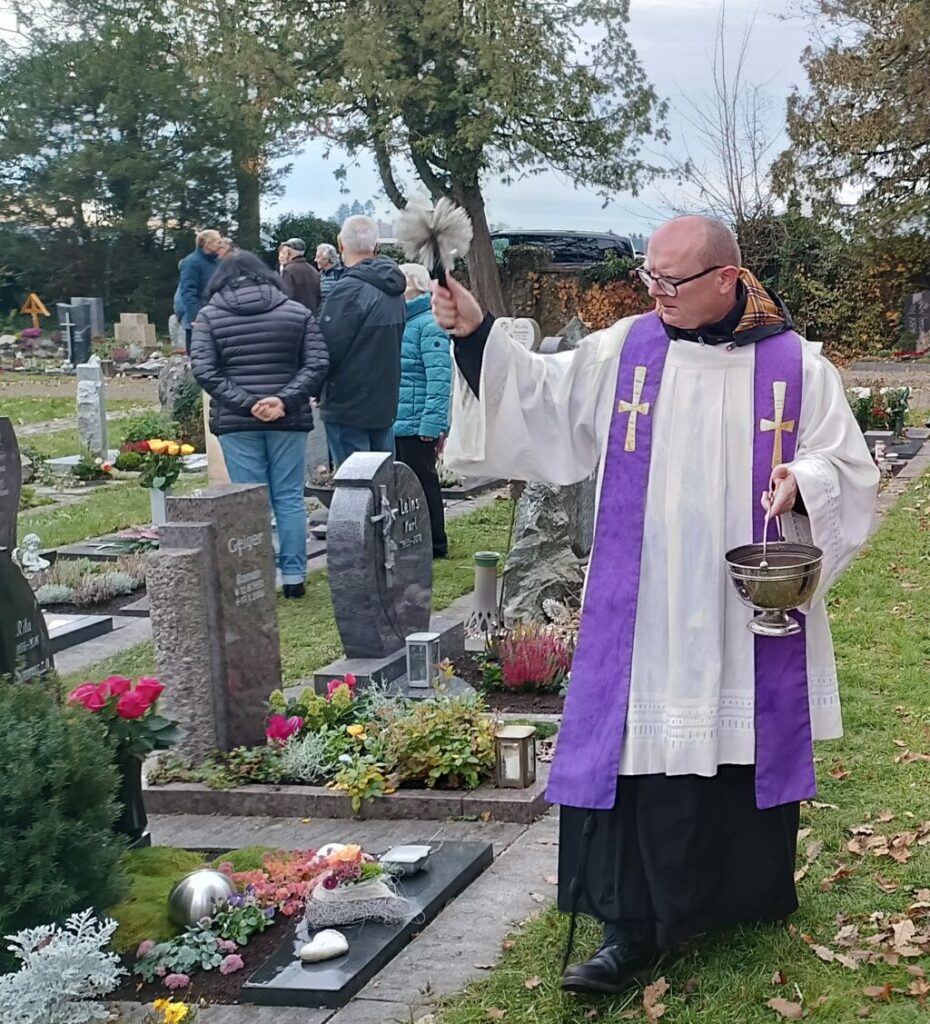 Pater Hubert Vogel segnet die Gräber.