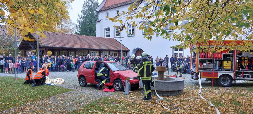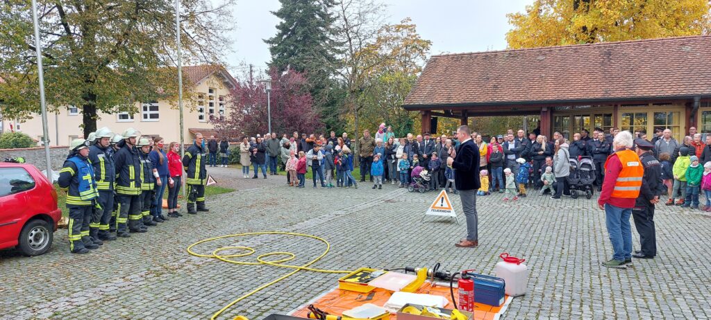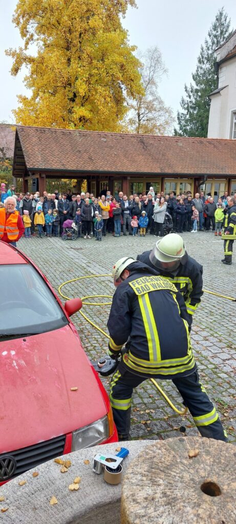 Michelwinnaden (dbsz) – Am Kirbesonntag (20.10.) zeigte die Abteilung Michelwinnaden im Rahmen ihrer Schauübung ihr Können. Angenommen wurde ein Verkehrsunfall: Ein PKW fährt gegen einen Baum.