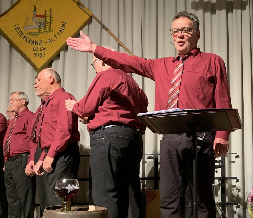 Peter Schad leitet seit vielen Jahren den Männerchor Alttann. Das Bild zeigt einen Teil des Ensembles.