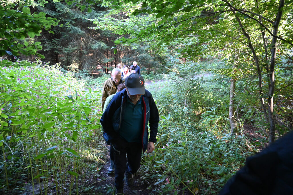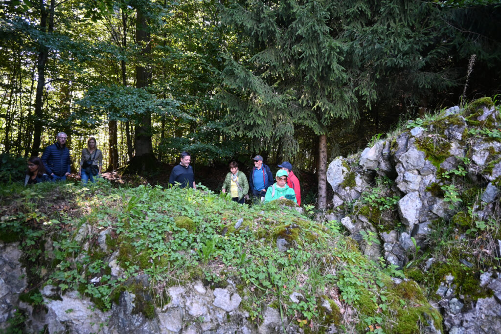 Unterwegs sorgte „Gere“ Frick für beste Unterhaltung. Vielen Waldseern bekannt, bezeichnete er sich augenzwinkernd als „Hausmeister der Ruine“ – schließlich hält er ehrenamtlich Gras und Gestrüpp im Zaum, damit die Anlage überhaupt zugänglich bleibt. Mit Anekdoten aus seiner Jugendzeit fesselte er die Wandergruppe: „Wir haben als Buben immer nach Schätzen gegraben. Besonders spannend waren die Geschichten vom geheimen Tunnel, der bis zur Volkertshauser Kapelle führen sollte. Angeblich hat man zuerst einen Hahn hineingelassen, um zu sehen, ob der Weg frei ist.“ Einen Tunnel fand freilich niemand – aber die Erzählung lebt bis heute.