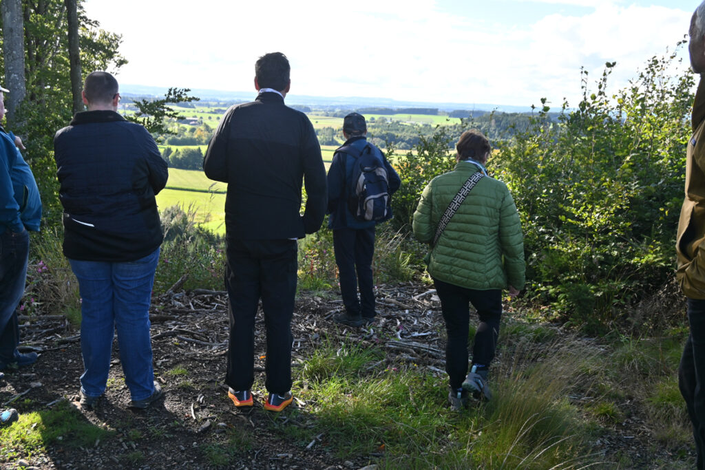 Die Route führte weiter über den Endmoränen-Rücken zu zwei Aussichtspunkten: einmal mit Blick in den Haistergau, einmal über das Urbachtal. Nach einer erlebnisreichen Stunde endete die Wanderung gemütlich in der Gaststätte „Zum Burgstock“ in Hittisweiler.