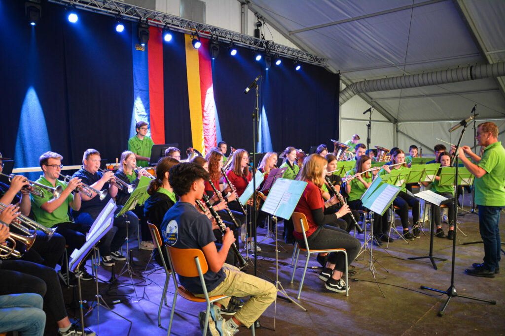 Ein tolles Programm war an diesem Tag geboten. Die jungen Musikerinnen und Musiker marschierten wie bei einem richtigen Fahneneinmarsch ins gut gefüllte Festzelt ein, hierzu spielte die Jugendharmonie Eschen auf. Danach durfte jede Jugendkapelle auf der Bühne ihr Bestes geben (das Festzelt bebte). Besonders gefreut hat es die Musiker aus Bad Waldsee und Umland, den Kreisverbandsvorsitzenden Rudi Hämmerle und alle Präsidenten der Bodensee anliegenden Blasmusikverbänden begrüßen zu dürfen.