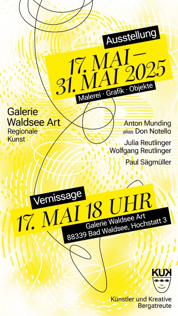 Bad Waldsee – Nach der Einzelausstellung von Maler und Schriftsteller Jörn-Peter Dirx präsentiert sich nun ab dem 17. Mai das Künstlerquartett Anton Munding, Julia und Wolfgang Reutlinger und Paul Sägmüller.