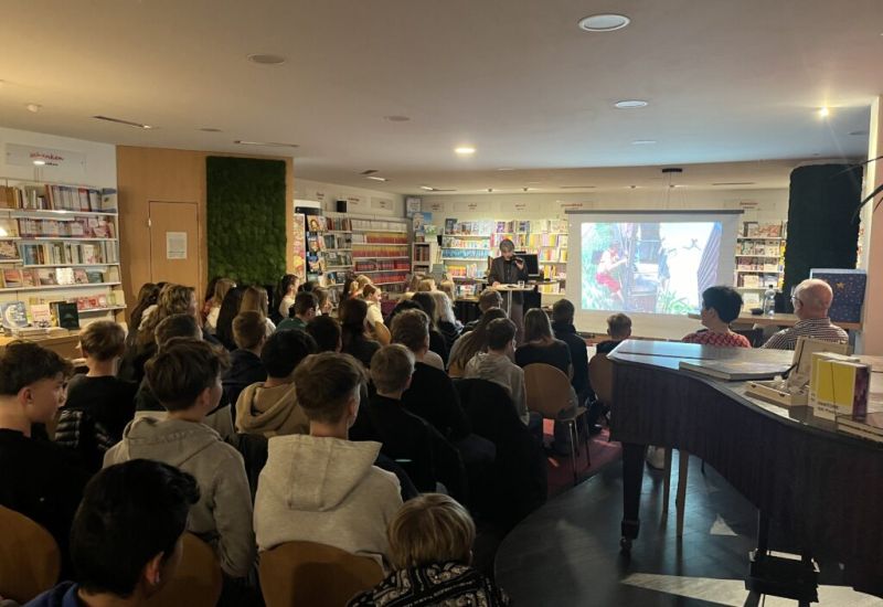 Bad Waldsee – Ein eindrucksvolles Literaturerlebnis hatten die achten Klassen der Eugen-Bolz-Schule. Am Mittwoch, 20. März, gewährte der Jugendbuchautor Dirk Reinhardt spannende Einblicke in die Entstehungsgeschichte seines Romans „Train Kids“ in der Waldseer Stadtbuchhandlung.